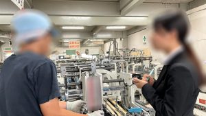 営業部で社内の紹介・見学から仕事の内容、協力会社様への訪問同席などをし、製造部では、トムソン・仕上げ・サックマシンの作業体験をしていただきました。企画・設計から製造でパッケージがどのように作られているのかを知っていただけたかなと思います。