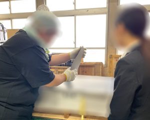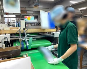 トムソン課で面切り、仕上げ課はむしり、サックマシン課は取り手の体験をしました。