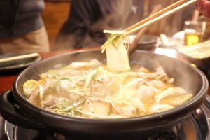 ボーリングで体を動かした後は、お鍋のコース料理を食べに行きました。